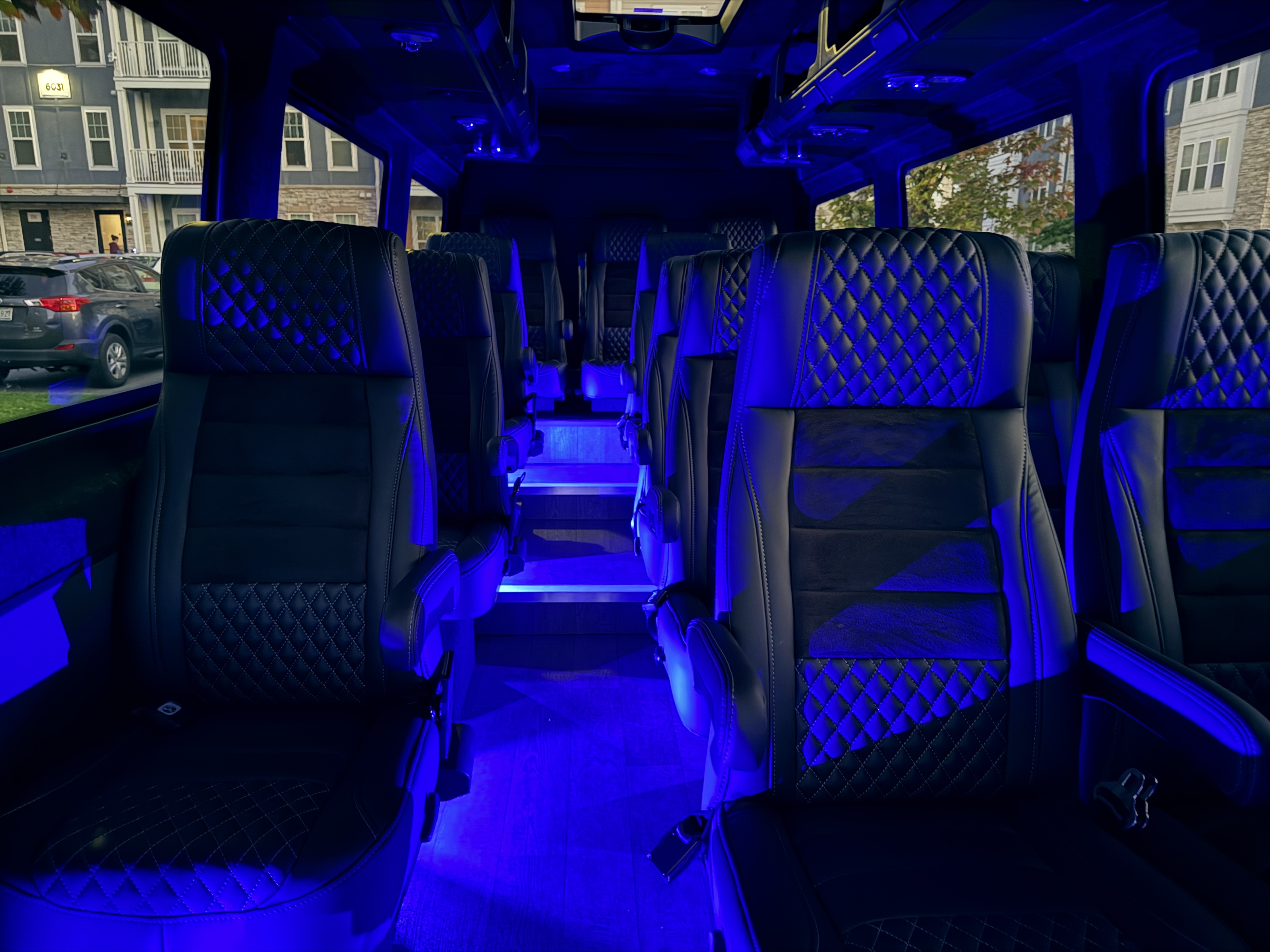 Our shuttles include onboard entertainment, WiFi, and plush seating—perfect for keeping your guests relaxed and ready to celebrate.